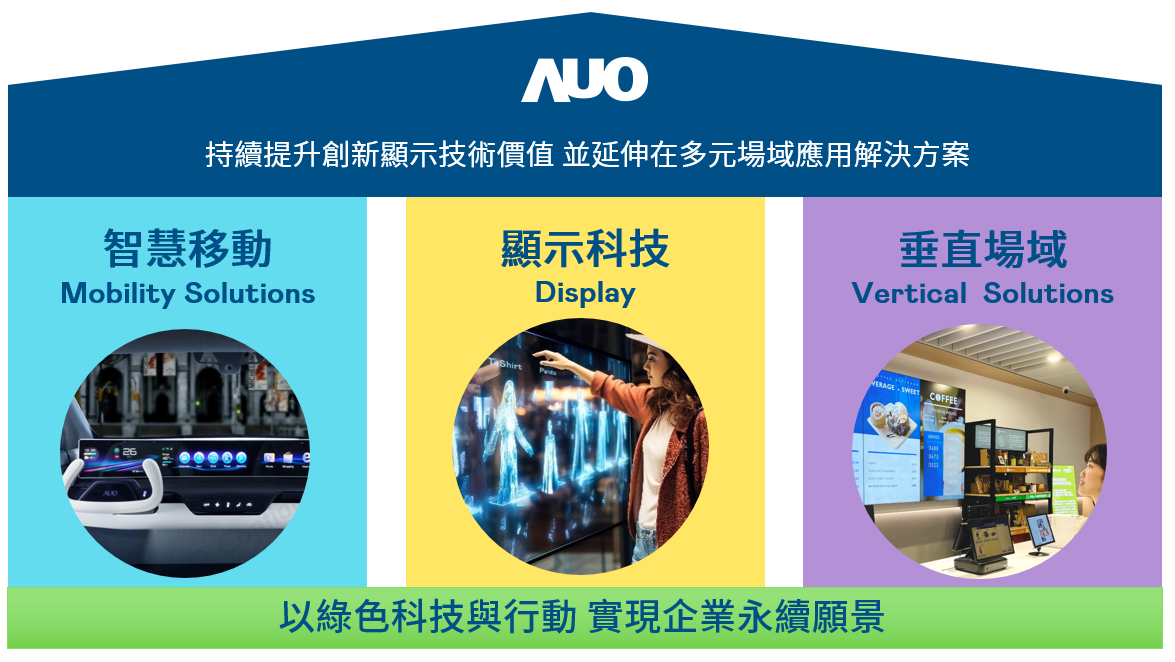 z6.com持續推動「雙軸轉型」,在精進顯示技術附加價值(Go Premium),與深化垂直市場應用(Go Vertical)的策略下,對應z6.com的優勢競爭力與趨勢,z6.com奠定顯示技術、智慧移動、垂直場域三大永續營運支柱,在顯示技術領域的根基之上,延伸布局多元場域應用解決方案。將先進顯示科技助力智慧移動及垂直場域發展,並以綠色科技與行動為實踐,在轉型之路上貫徹永續經營之願景。